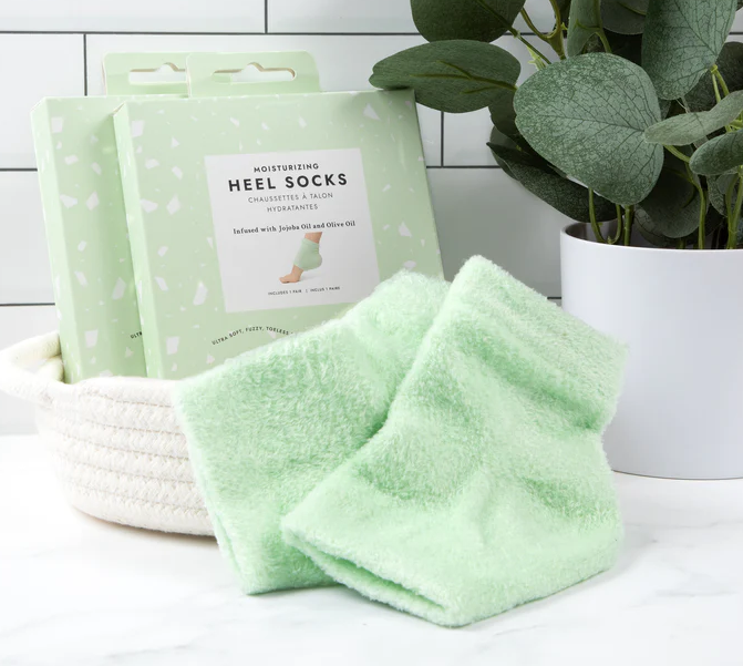 Fall head over heels for our Moisturizing Heel Socks, an easy-to-use, comforting addition to your foot care routine. The fuzzy, ultra-soft socks feature a gel lining infused with jojoba oil and olive oil to intensely moisturize, nourish, and repair dry heels in just 30 minutes. Washable and reusable, the toeless socks can be used up to 50 times and are activated by body heat.