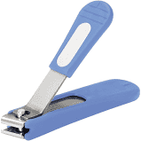 Heavy-duty, wide jaw stainless steel toenail clipper designed to cut thicker toenails. Straight edge blade is ergonomically designed at an angle for ease of use. Handle can be adjusted for right- or left-handed use. Includes built-in file and clipping catcher.