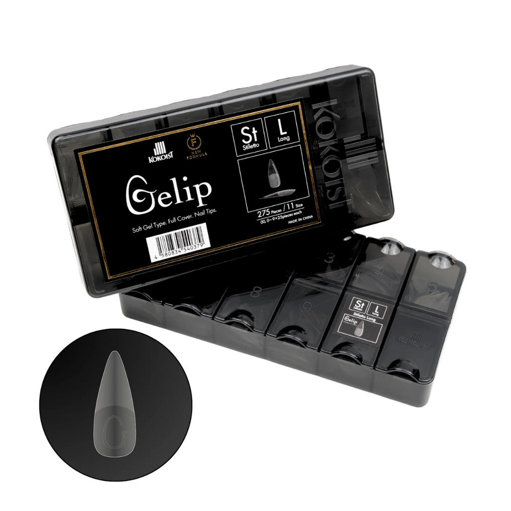 Stiletto Long Gelip Extensions (275 pcs) Gelip is a full-cover extension specially formulated to provide a comfortable lightweight nail enhancement in a fast and easy-to-use format without sacrificing quality.