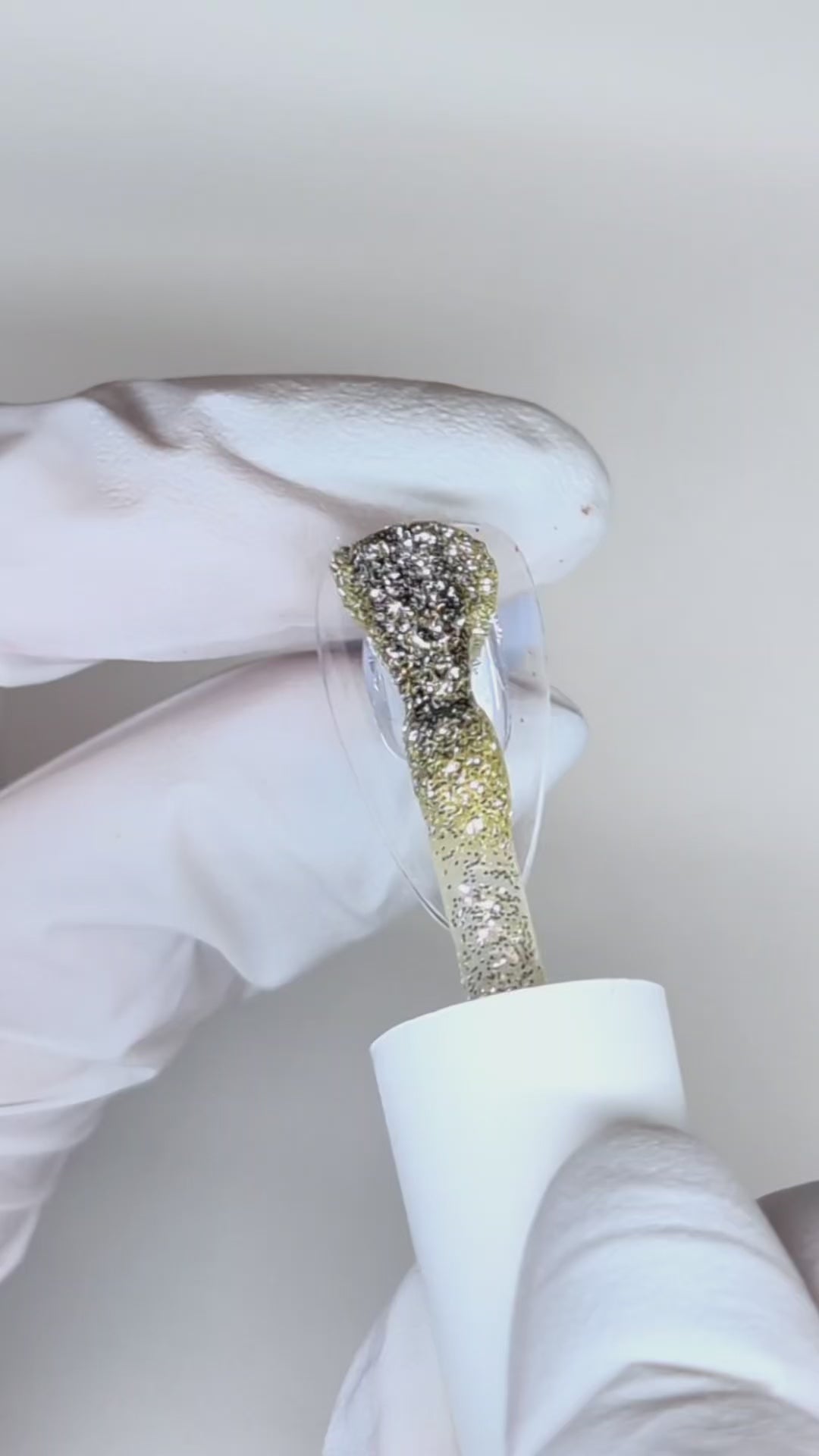 A stunning, light champagne-gold full-coverage glitter, featuring a complex mix of iridescent white and classic gold particles for exceptional sparkle.