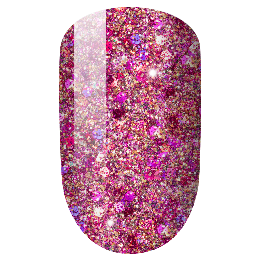 A bold impact magenta with echos of holo pink and gold.