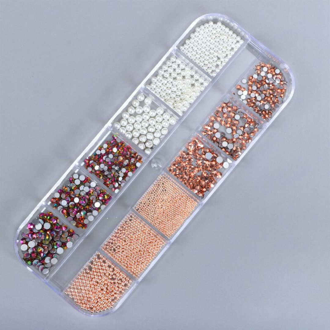Gemini 12 pk Rhinestones & Pearls | Rose Gold Beads