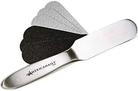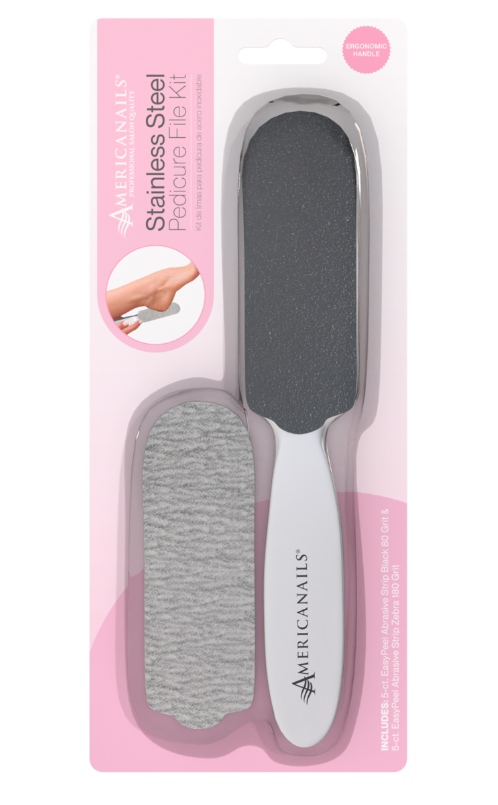 - Fully sanitizable, immersible stainless steel pedicure file. Sturdy construction and ergonomic design ensures a firm grip with optimal leverage to quickly file away dead skin and calluses. Use new EasyPeel abrasive strips for each client to ensure maximum sanitation. Americanails Reusable Stainless Steel Pedicure File Kit