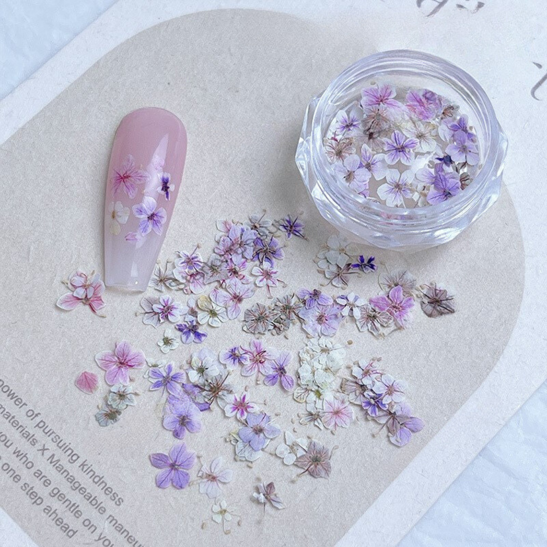 Gemini Nail Art | Dry Hydrangea Petals Pastel