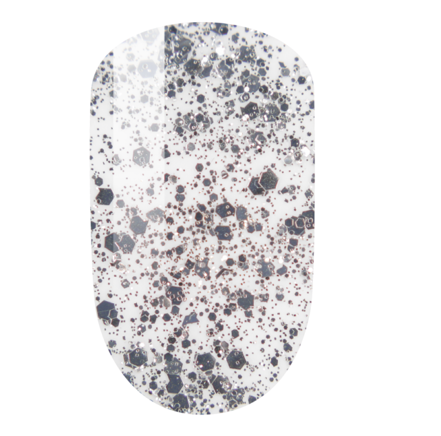 Silver hexes and microglitter on clear polish.